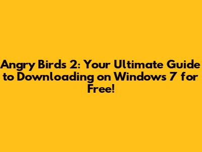 Hey guys, are you ready to dive back into the world of feathered fury and pig-popping fun? Angry Birds 2 is calling, and if you're rocking a Windows 7 PC, you're in luck! This guide will walk you through everything you need to know about how to download Angry Birds 2 for PC Windows 7, totally free. We'll cover everything from the basics of the game to the download process and even touch on some handy tips and tricks to boost your gameplay. Let's get started and make sure you're ready to slingshot those birds to victory! Get ready to say goodbye to those pesky pigs once and for all!