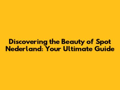 Discovering The Beauty Of Spot Nederland: Your Ultimate Guide