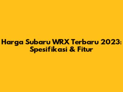 Harga Subaru WRX Terbaru 2023: Spesifikasi & Fitur