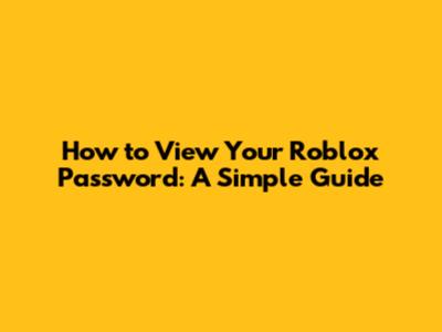 How To View Your Roblox Password: A Simple Guide