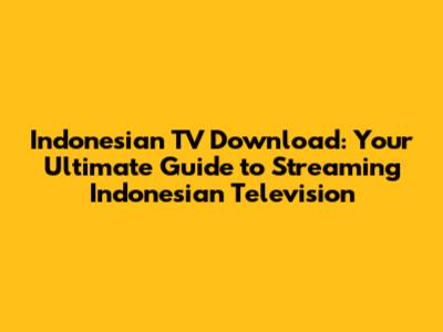 Indonesian TV Download: Your Guide To Streaming