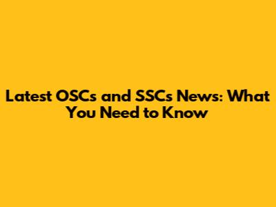 Latest OSCs And SSCs News: What You Need To Know