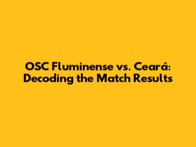Hey guys! Let's dive deep into the exciting world of Brazilian football, specifically focusing on the showdown between OSC Fluminense and Ceará. We'll break down the results, analyze the key moments, and give you a comprehensive understanding of what went down on the pitch. This is your go-to guide for everything you need to know about these matches, providing you with insights, stats, and a bit of fun along the way. Whether you're a die-hard fan or just starting to follow Brazilian football, you're in the right place. We'll explore everything from the final scores to the players who made the difference. So, grab your snacks, get comfortable, and let's get started.
