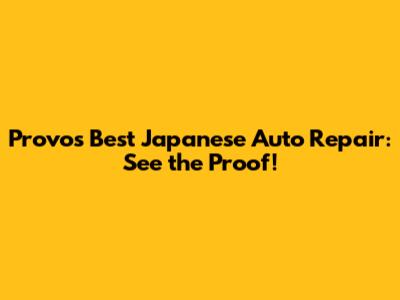 Provo's Best Japanese Auto Repair: See The Proof!